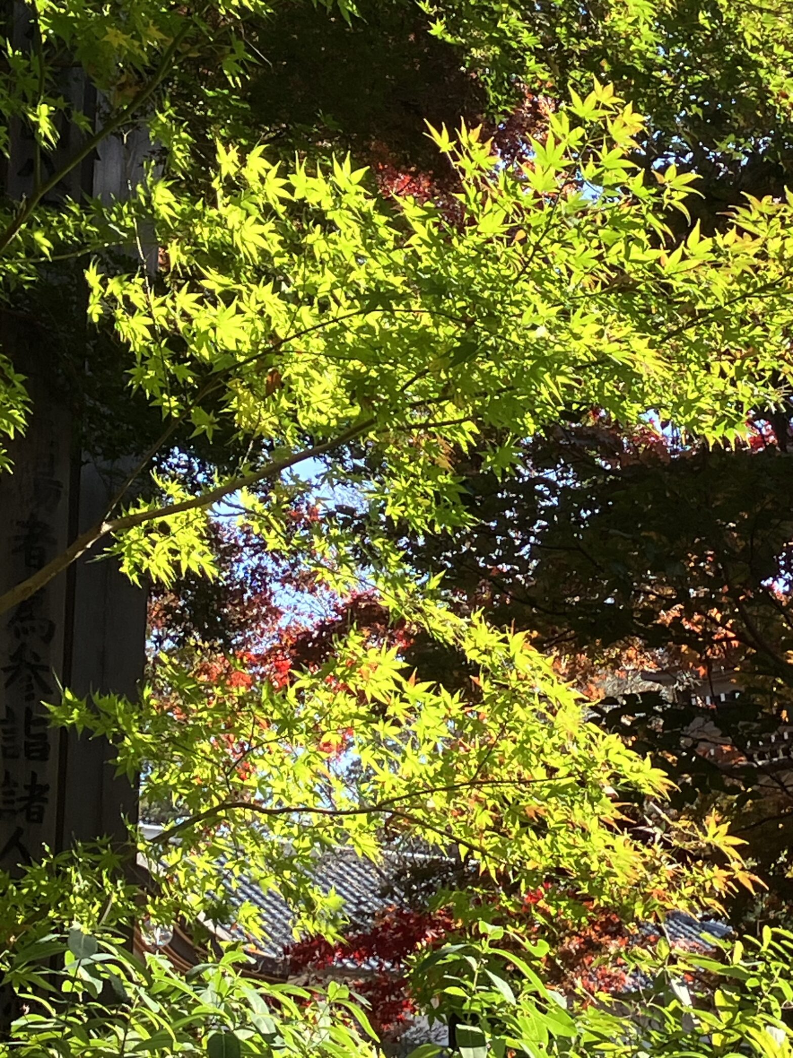 もみじの赤が増えるにつれまだ青い葉達が鮮やかに浮かび上がってきます。