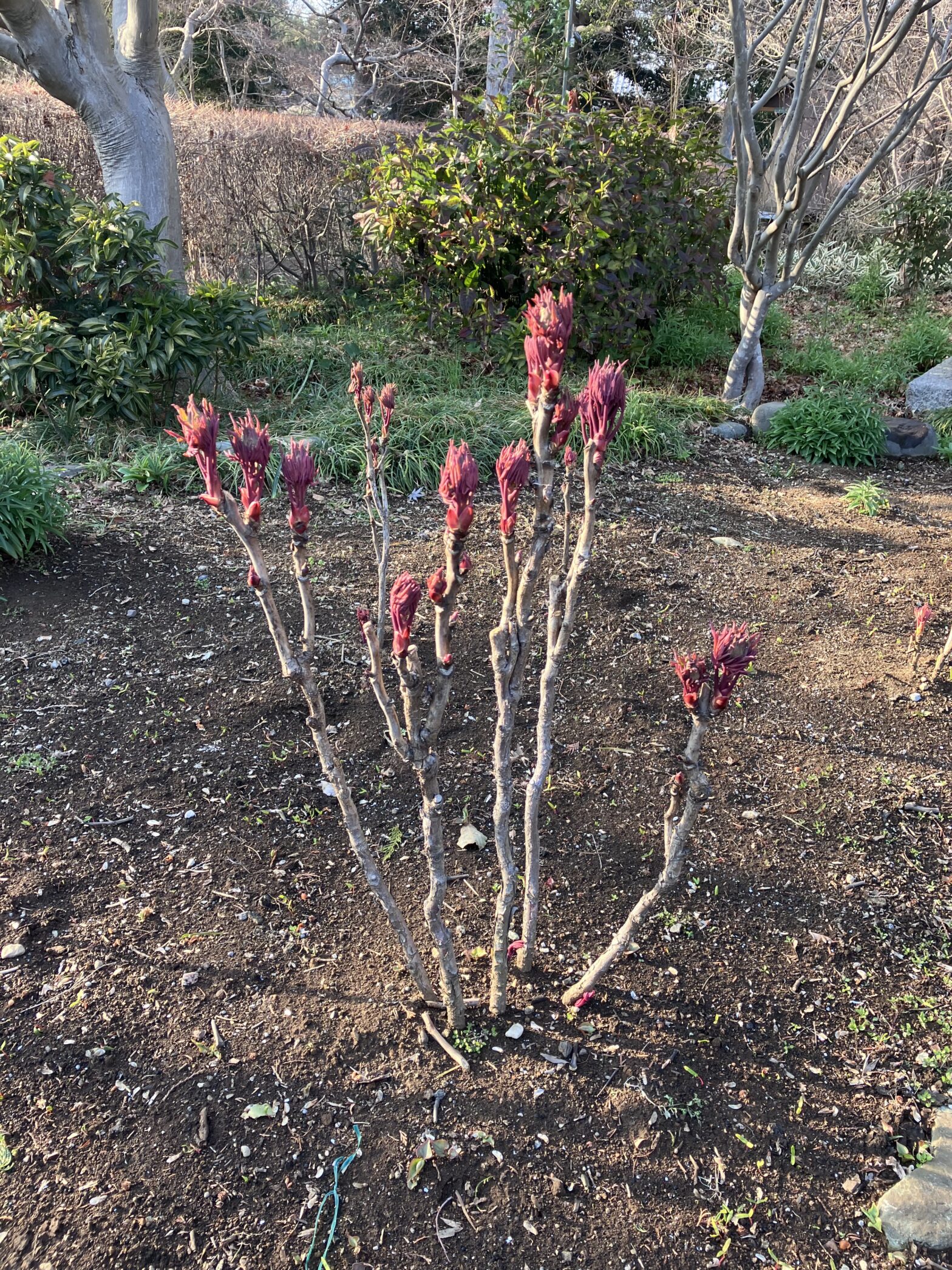 牡丹の新芽がすくすく育っています。