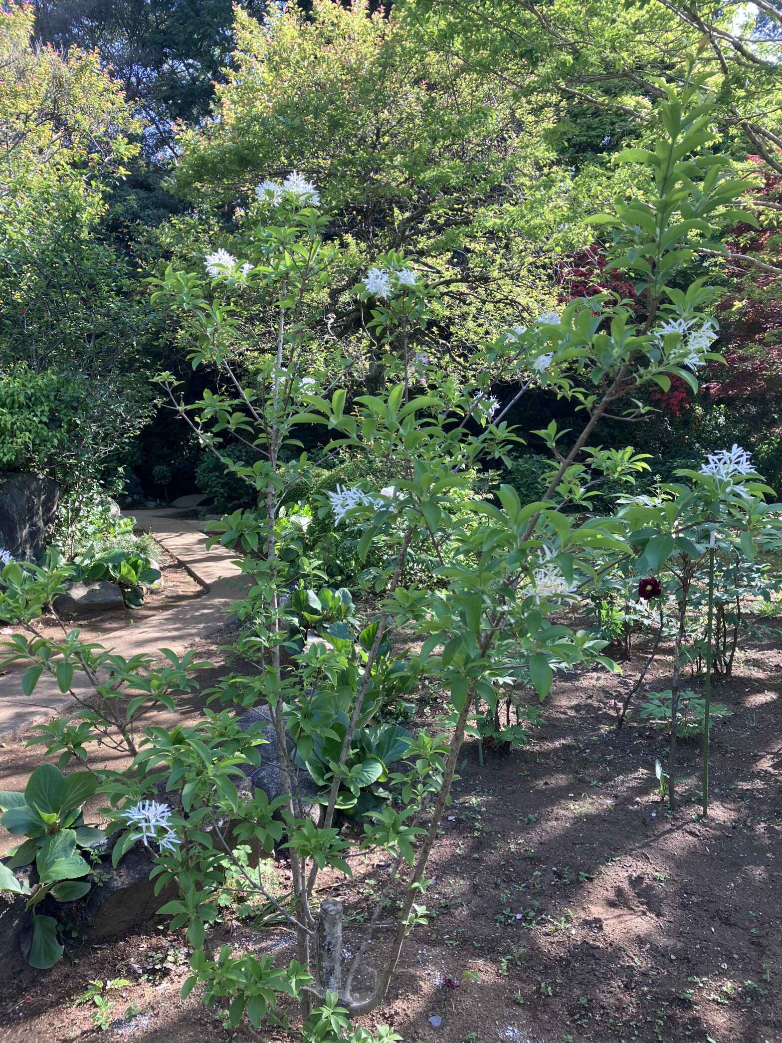 新たに植えたなんじゃもんじゃの木に花が咲きました。